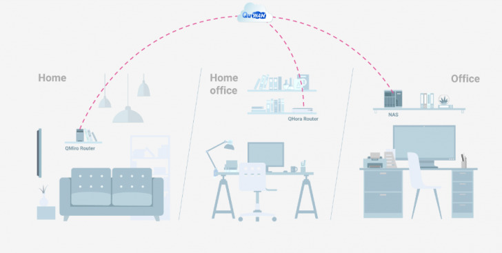 Praca w domu zmieniła życie i codzienne praktyki pracowników i firm, ale teraz wyzwaniem jest zapewnienie, że zawsze jesteśmy bezpiecznie połączeni z biznesowym IT. QNAP QuWAN to rozwiązanie SD-WAN, które umożliwia automatyczną topologię Mesh VPN od sieci korporacyjnych do osobistych routerów domowych. Po skonfigurowaniu domowego QMiro-201W, QuWAN Cloud Orchestrator umożliwia QMiro-201W łączenie się z siecią VPN typu mesh zarówno w trybie routera, jak i AP. Po tym, QMiro-201W będzie Twoją bramą do chmury firmowej.