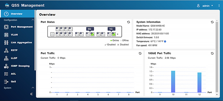 System przełączników firmy QNAP (QSS) zapewnia pulpit nawigacyjny, zarządzanie portami i przewodnik po konfiguracji, dzięki czemu administratorzy mogą kontrolować sieci Warstwy 2.