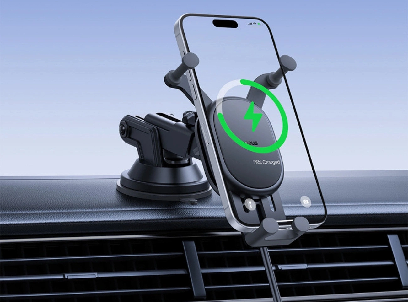 - Mechanizm: grawitacyjny typu Y - automatycznie zaciska ramiona pod wpływem ciężaru telefonu, stabilizując go w ułamku sekundy.