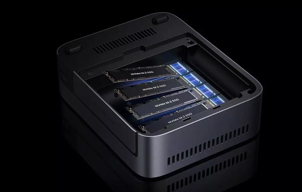 - Dyski: Obsługa 4 szybkich nośników NVMe 2280 SSD gwarantująca błyskawiczny dostęp do zgromadzonych zasobów.