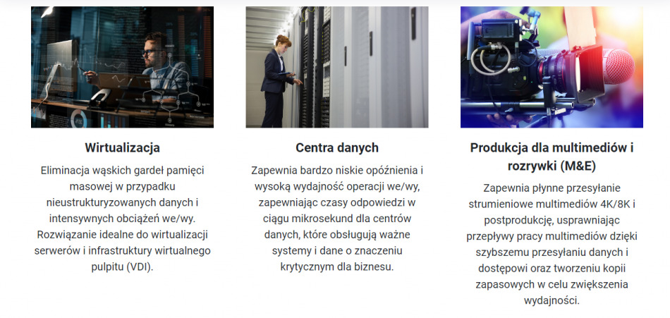 - Obsługa pamięci masowej wirtualizacji i hosting maszyn wirtualnych oraz aplikacji kontenerowych.