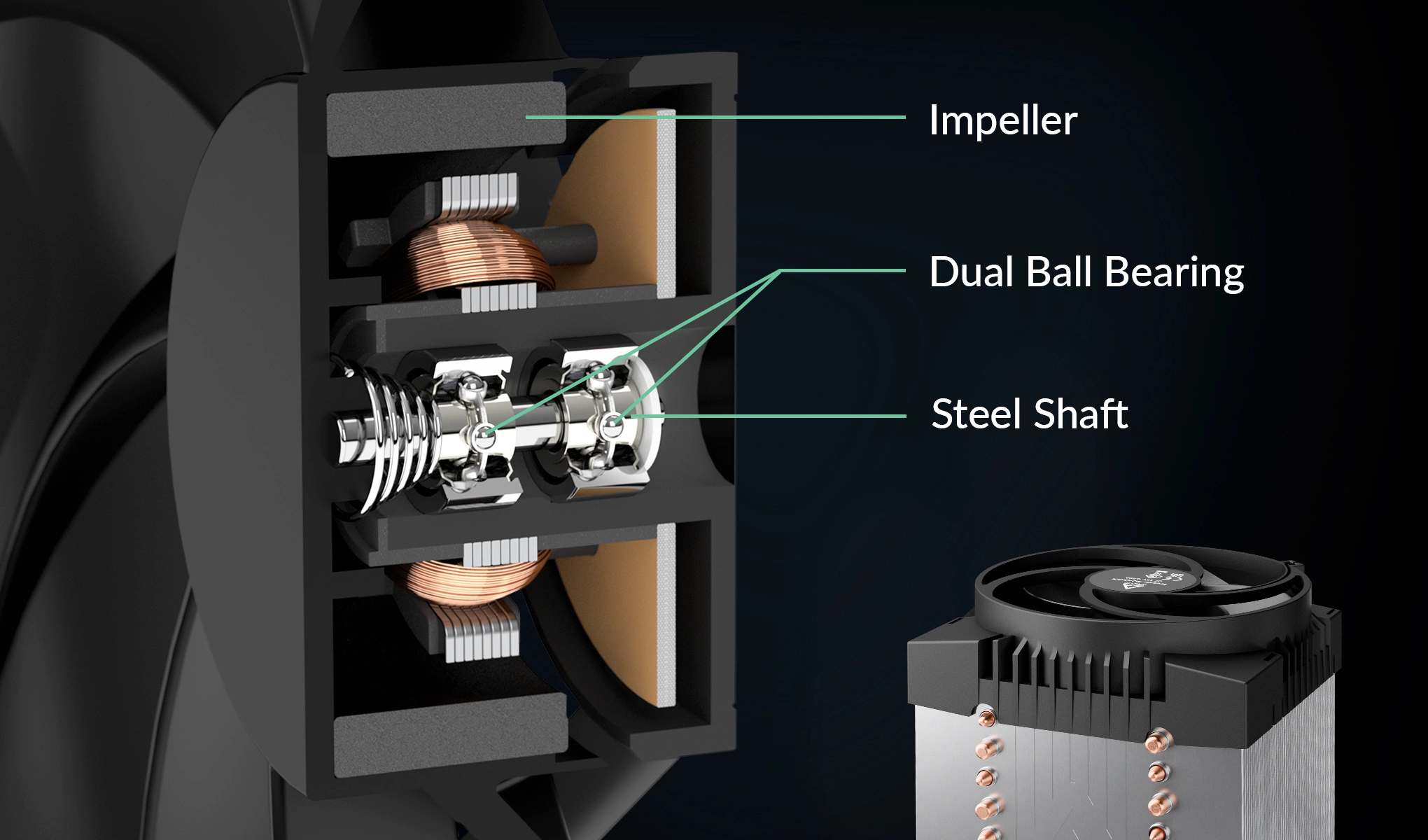 - Łożyskowanie: Dual Ball Bearing – podwójne łożyska kulkowe gwarantujące długowieczność i stabilną pracę w trybie 24/7.