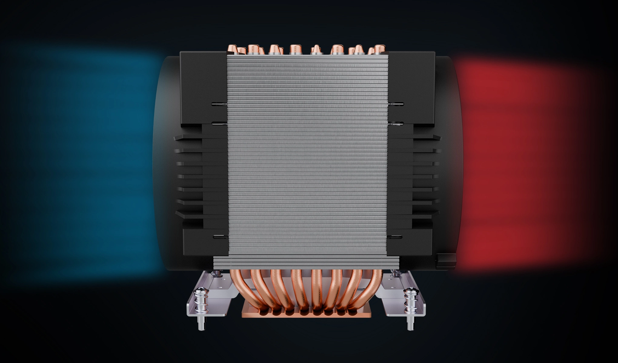 - Konstrukcja Heatpipe: 8 rurek 6 mm – osiem miedzianych rurek cieplnych z bezpośrednim stykiem dla maksymalnej efektywności termicznej.