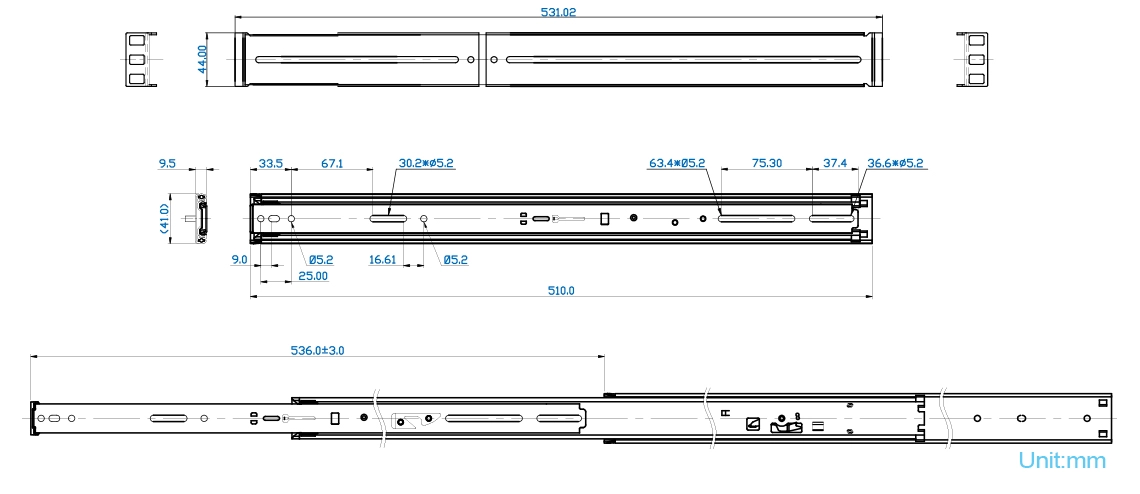 - Łożyska kulkowe: Mechanizm wysokiej klasy – gwarantuje płynny i cichy wysuw obudowy podczas prac konserwacyjnych.