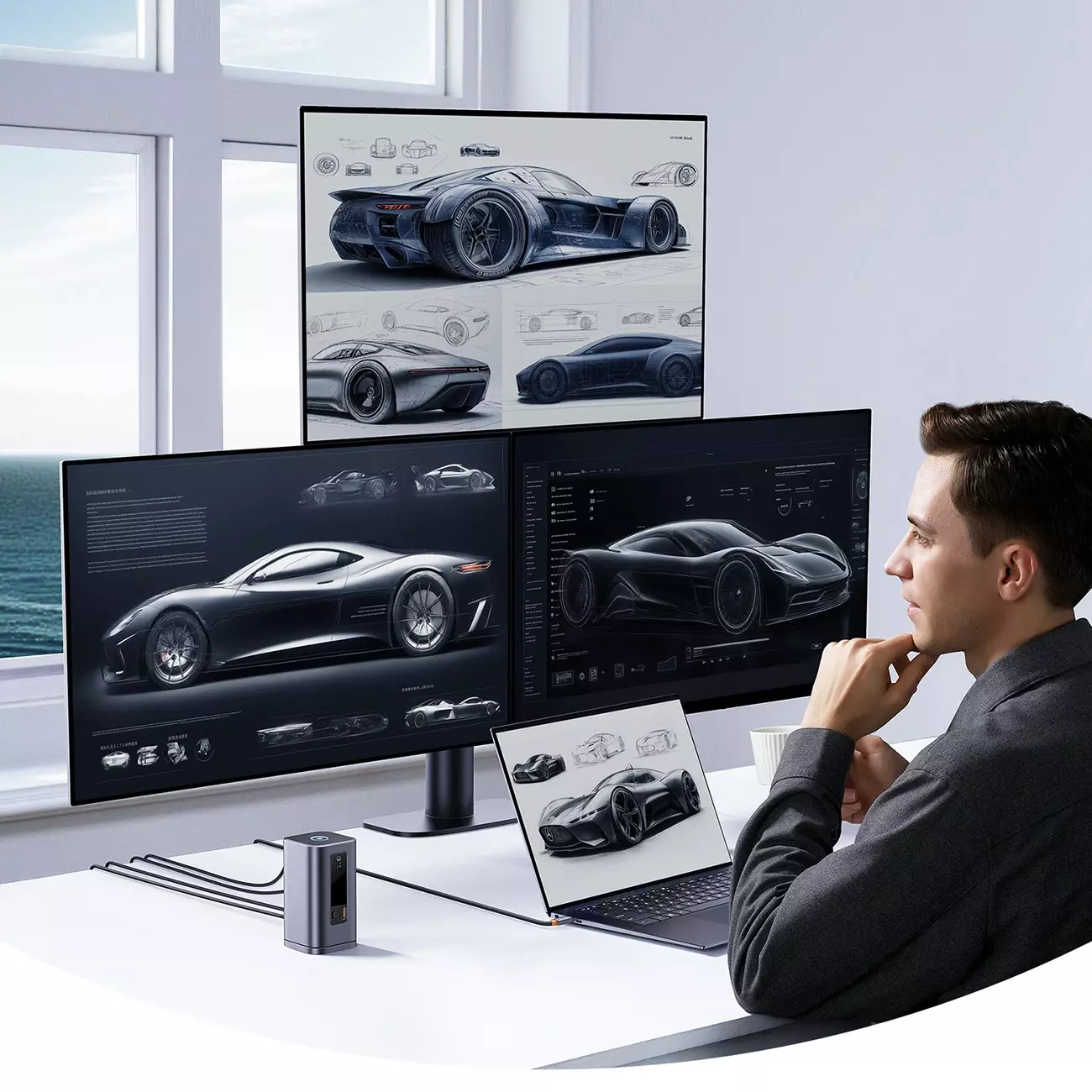 - Zasilanie: Power Delivery do 100W – dołączona ładowarka zasila stację i podłączony komputer.