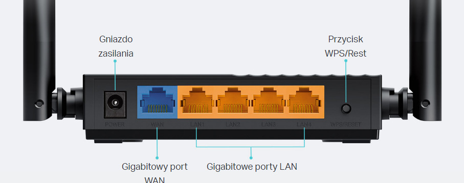 Gigabitowe porty Ethernet (1 port WAN + 4 porty LAN) zapewniają nawet 10 razy szybsze prędkości niż standardowe porty Ethernet. Podłącz komputer, smart TV czy konsolę do gier i korzystaj z niezawodnych połączeń.Archer C64 to sprzęt o bardzo korzystnym stosunku jakości do ceny. Gigabitowe porty Ethernet pozwalają na wykorzystanie w pełni potencjału połączonych urządzeń.
