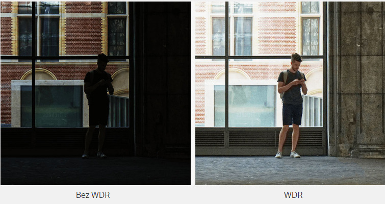 • WDR - funkcja dostosowuje kontrast oświetlenia do warunków, aby zminimalizować zacienienia i wydobyć z obrazu rzeczywistą głębię.