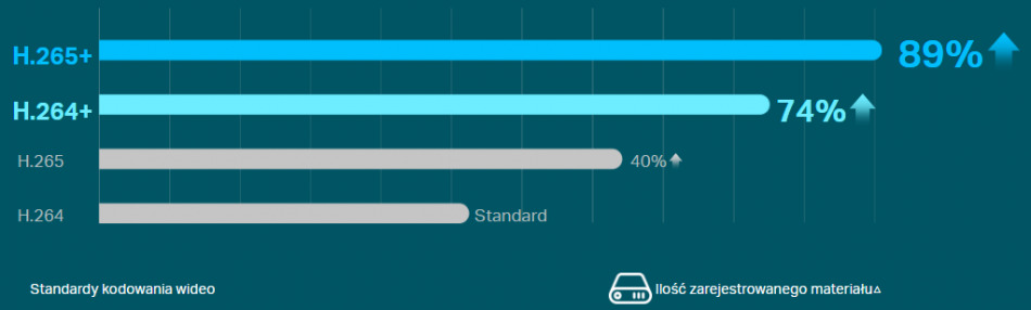 Większa kompresja. Odczuwalna oszczędność miejsca. Taka sama jakość. H.265+