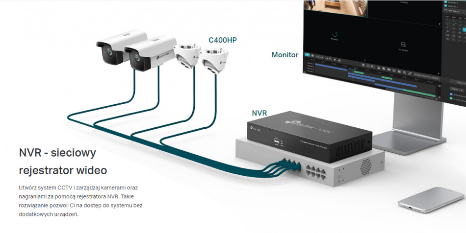 • Kamera VIGI C400 nagrywa w rozdzielczości 3 Mpx, co pozwala uchwycić najdrobniejsze detale