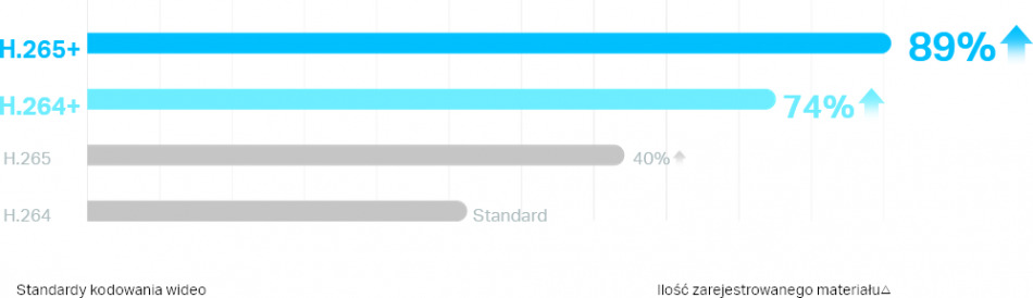 Standard kodowania H.265+ umożliwia przesyłanie skompresowanego, krystalicznie czystego obrazu wideo, aby zaoszczędzić miejsce na dysku oraz zmniejszyć obciążenie sieci i koszty monitorowania bez negatywnego wpływu na jakość obrazu.