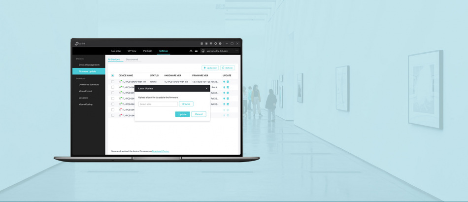 Aplikacja VIGI Security Manager na PC umożliwi Ci dostęp do obrazu na żywo oraz do nagrań archiwalnych. Wystarczy uruchomić aplikację i ustawić żądany widok.