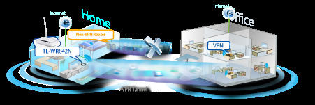 W oparciu o protokół IPSec, router TL-WR842N umożliwia utworzenie do 5 tuneli VPN z użyciem protokołu IKE (Internet Key Exchange) i zastosowaniem różnych algorytmów szyfrowania (DES/3DES/AES) i uwierzytelniania (MD5/SHA1). Umożliwia to użytkownikom wygodne łączenie się z siecią domową lub biurową z użyciem dowolnego połączenia internetowego.