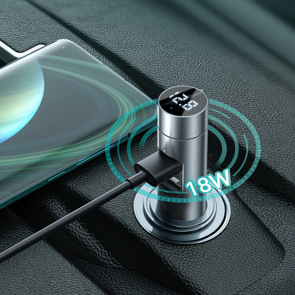 Urządzenie pozwala na szybkie i stabilne ładowanie urządzeń mobilnych z mocą 18W bez żadnych komplikacji. Dwa porty USB w połączeniu z eleganckim i kompaktowym wyglądem łączą w sobie wygodę i funkcjonalność. Transmiter został zaprojektowany z myślą o wysokiej jakości dźwięku, dlatego technologia przesyłu bezprzewodowego to Bluetooth 5.0. Nie trzeba się również martwić o model samochodu, ponieważ urządzenie jest kompatybilne z niemal każdym pojazdem.