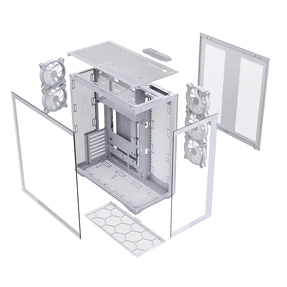 - Panele szklane: Hartowane szkło - Przezroczysty front oraz bok obudowy oferują panoramiczny widok na wnętrze komputera.