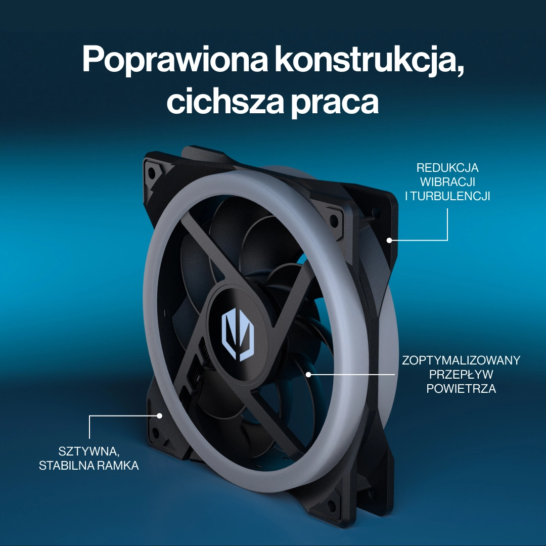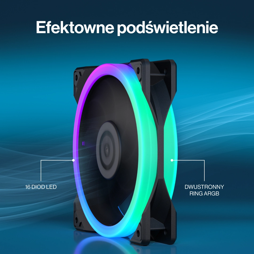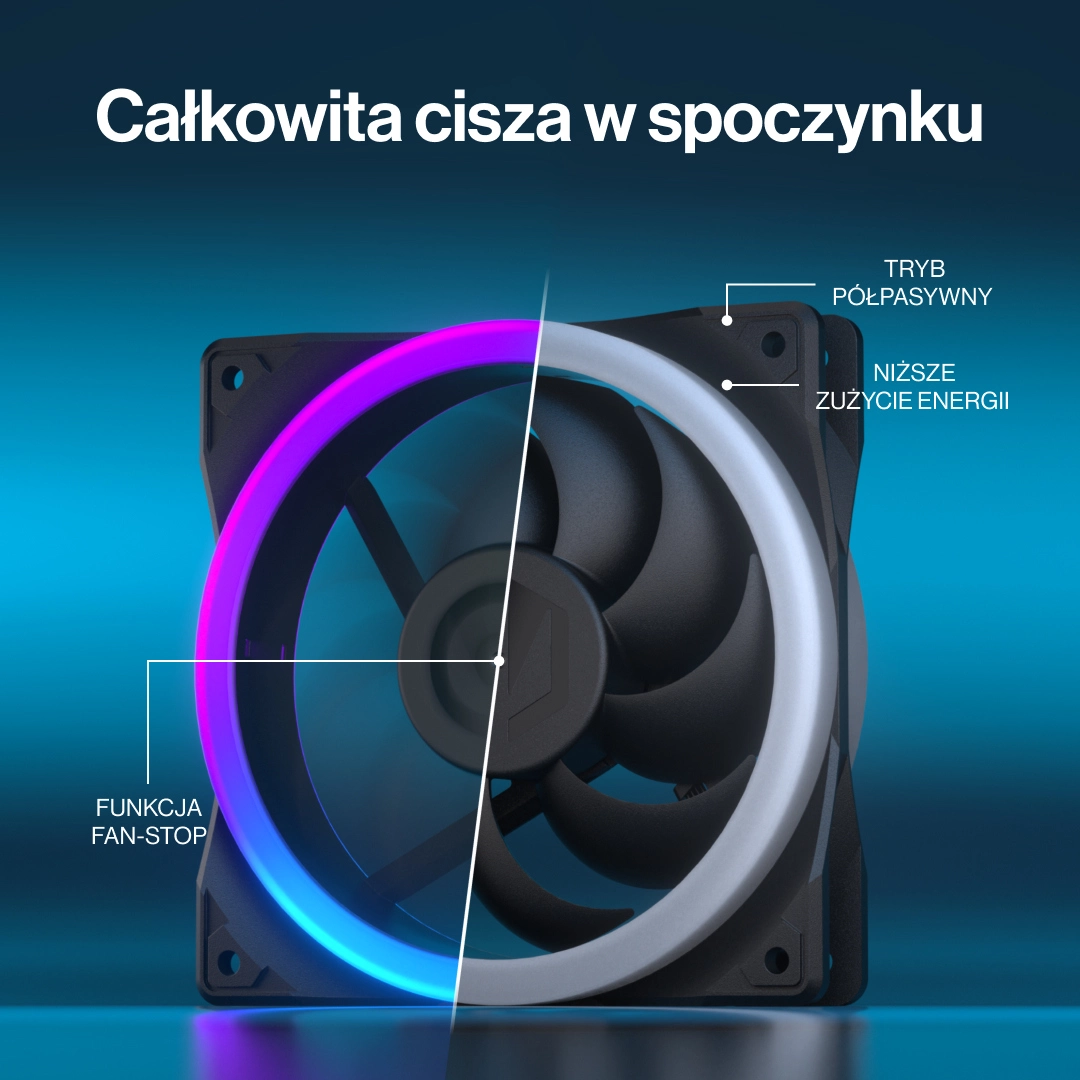 - Podświetlenie: Dwustronne ARGB – efektowny pierścień świetlny, który prezentuje się doskonale niezależnie od kierunku montażu urządzenia.