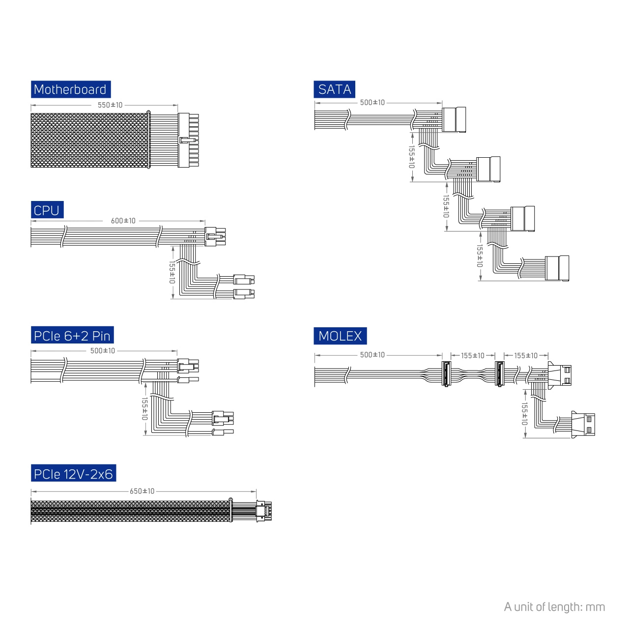 - Złącze PCIe 12V-2x6: Dedykowany przewód dla nowoczesnych kart graficznych, zapewniający bezpieczne i stabilne zasilanie bez przejściówek.