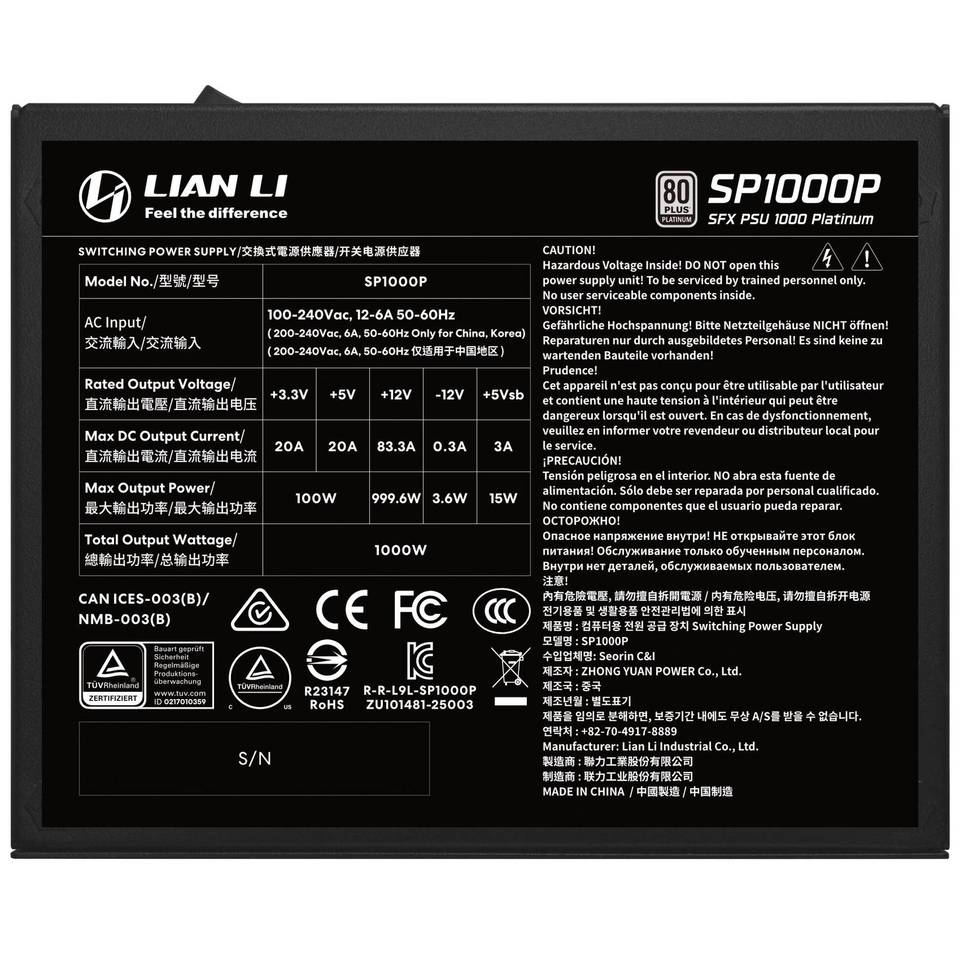 Zasilacz Lian Li SP1000 Platinum SFX ATX 3.1 PCIe 5.1 Czarny 1000W