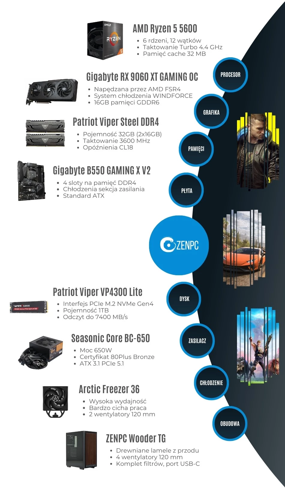 Dodaj pierwszą opinię: ZENPC Gaming AMD Ryzen 5 5600 9060XT16GB 1TB 32GB WooderRaty
