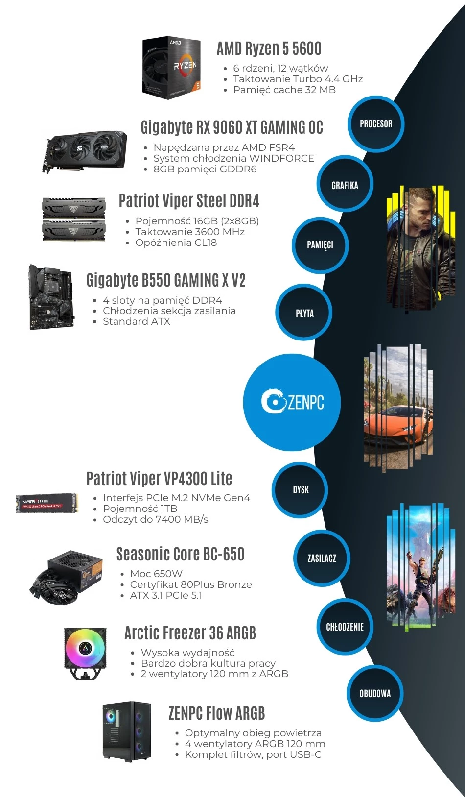 Dodaj pierwszą opinię: ZENPC Gaming AMD Ryzen 5 5600 9060XT8GB 1TB 16GB FlowRaty