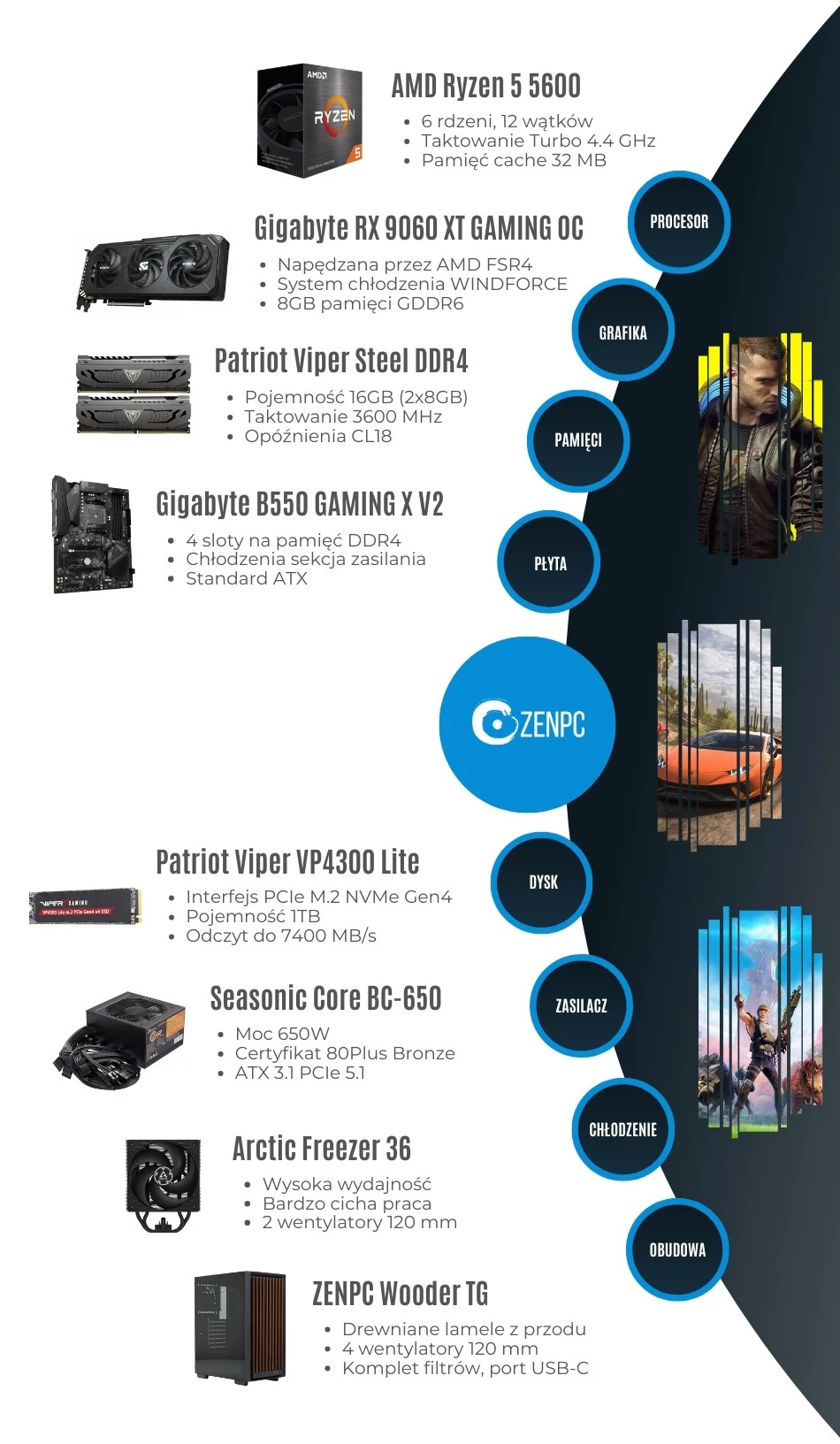 Dodaj pierwszą opinię: ZENPC Gaming AMD Ryzen 5 5600 9060XT8GB 1TB 16GB WooderRaty
