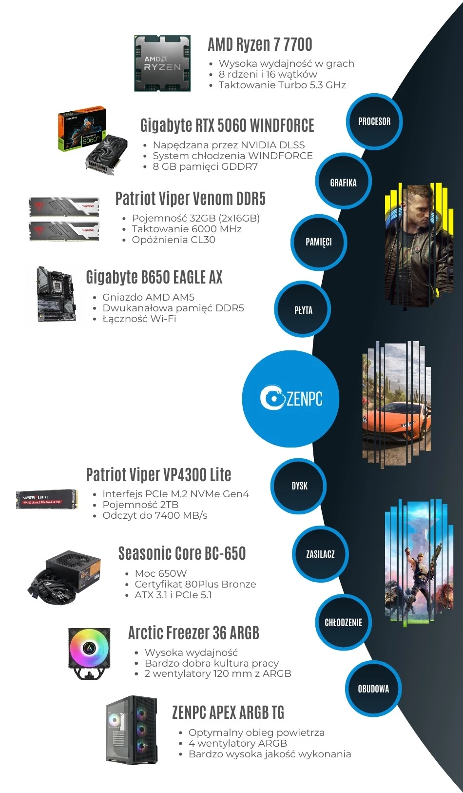 Dodaj pierwszą opinię: ZENPC Gaming AMD Ryzen 7 7700 RTX5060 2TB 32GB DLSS 4Raty