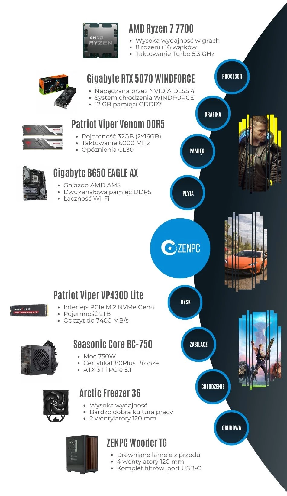 Dodaj pierwszą opinię: ZENPC Gaming AMD Ryzen 7 7700 RTX5070 2TB 32GB DLSS 4Raty