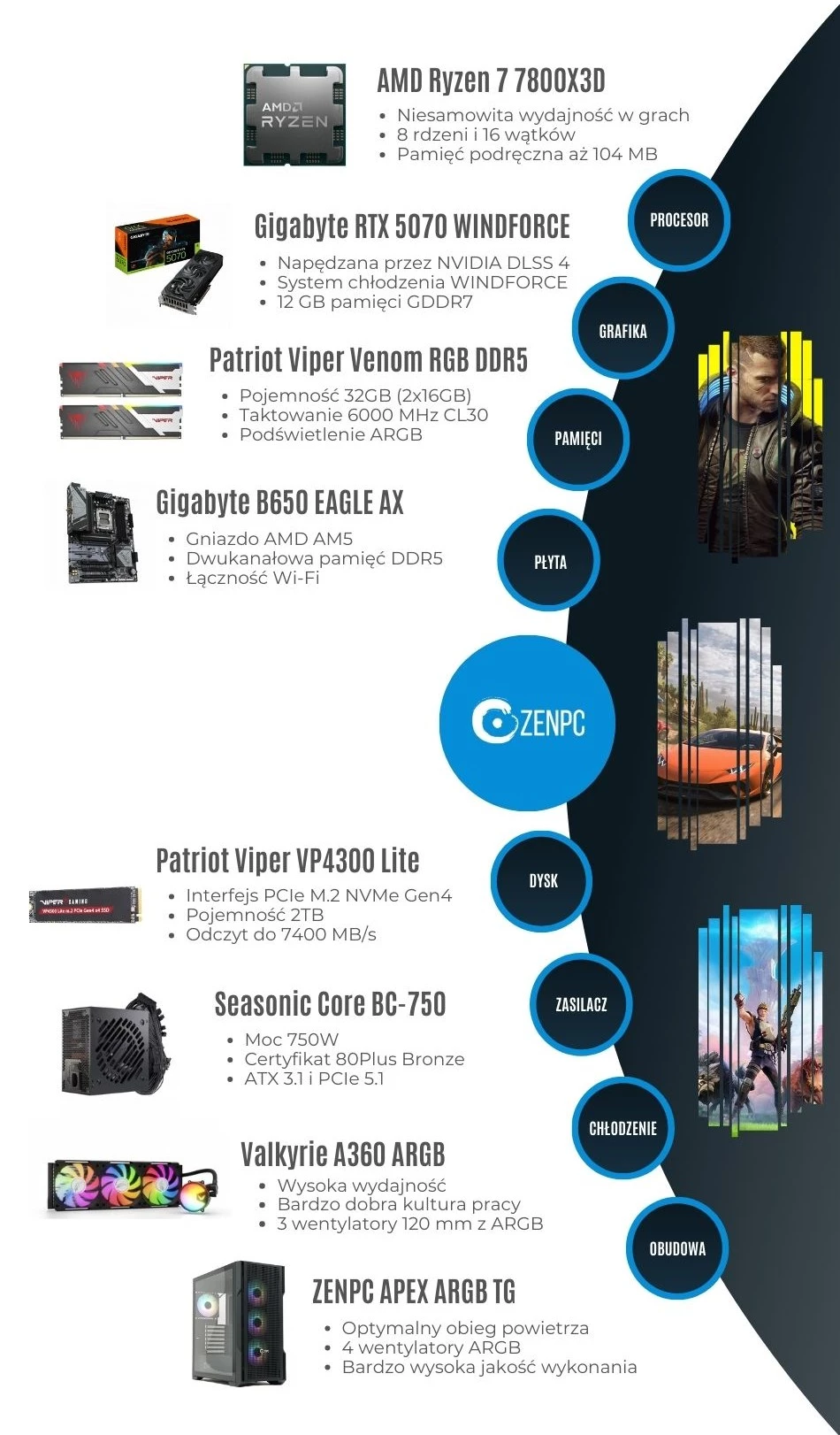 Komputer gamingowy ZENPC AMD Ryzen 7 7800X3D RTX 5070 2TB 32GB DLSS 4