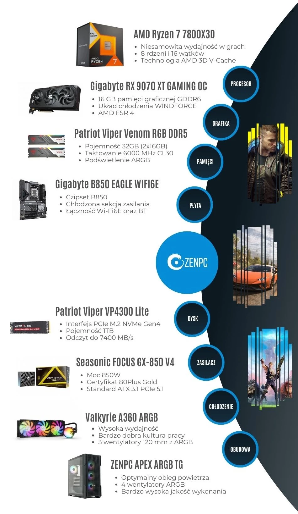 ZENPC Gaming AMD Ryzen 7 7800X3D RX9070XT 1TB 32GB ARGB