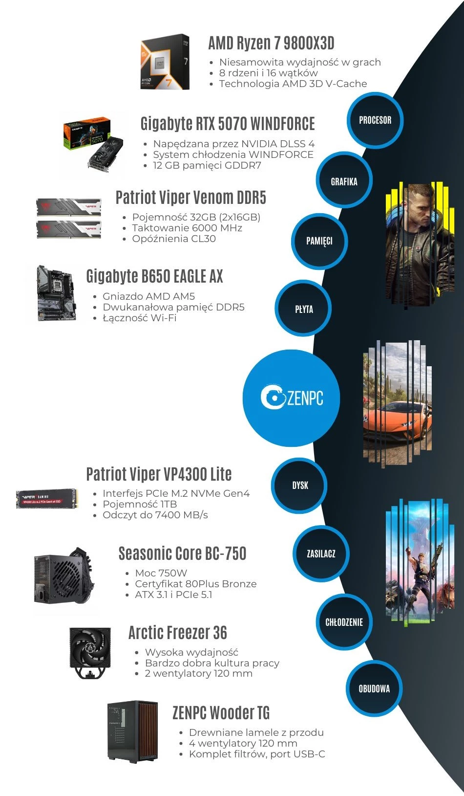 Dodaj pierwszą opinię: ZENPC Gaming AMD Ryzen 7 9800X3D RTX5070 1TB 32GB DLSS 4Raty