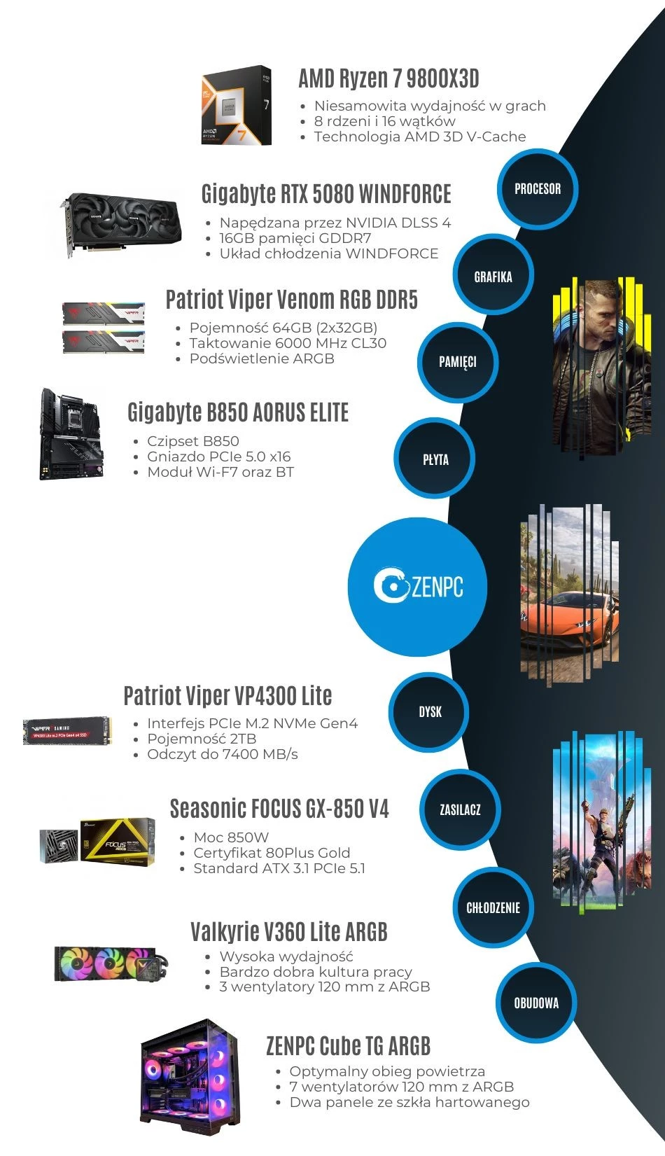 Dodaj pierwszą opinię: ZENPC Gaming AMD Ryzen 7 9800X3D RTX5080 2TB 64GB ARGB DLSS 4Raty