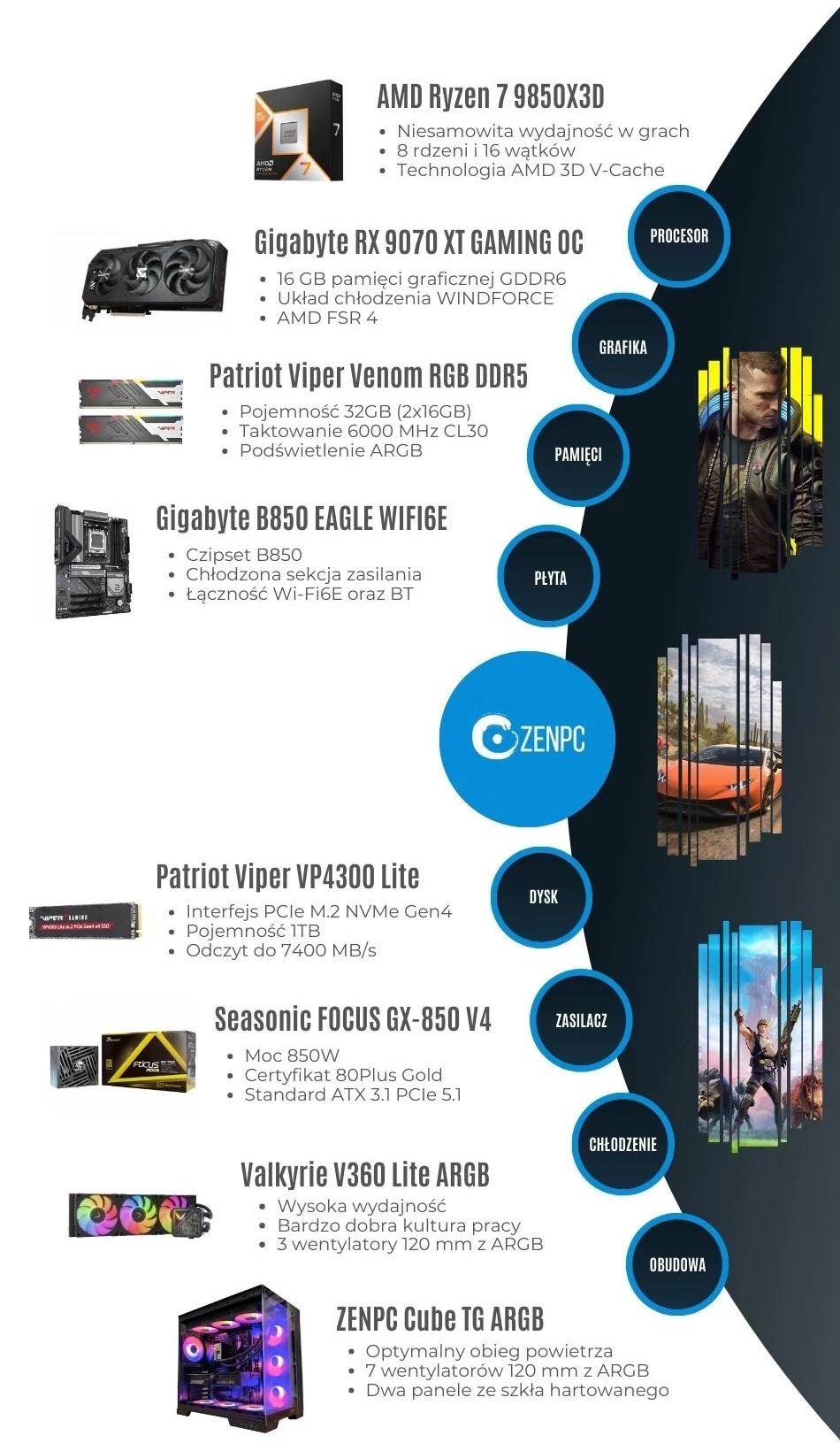 ZENPC Gaming AMD Ryzen 7 9850X3D RX9070XT 1TB 32GB ARGB