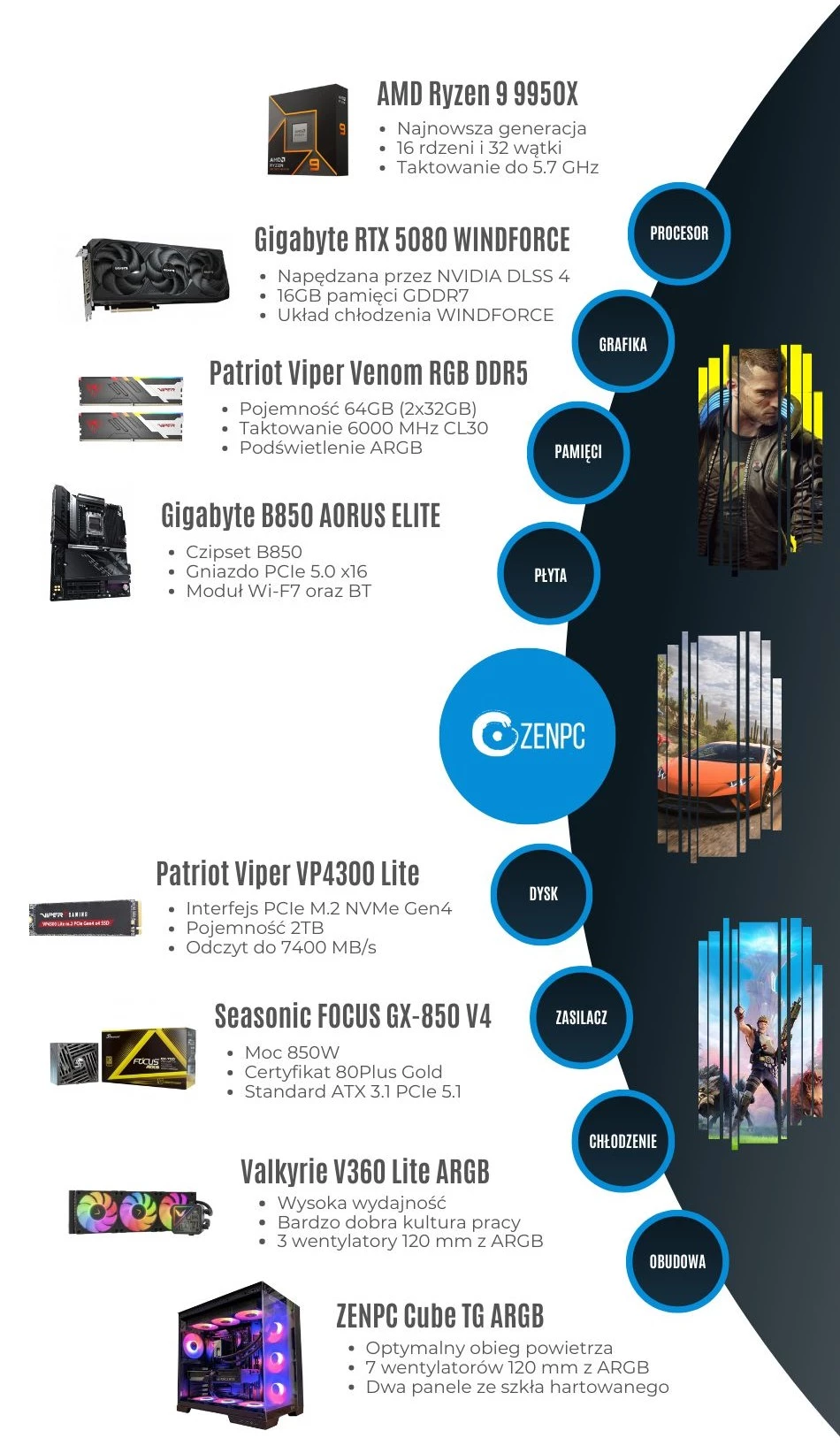 Dodaj pierwszą opinię: ZENPC Gaming AMD Ryzen 9 9950X RTX5080 2TB 64GB ARGB DLSS 4Raty