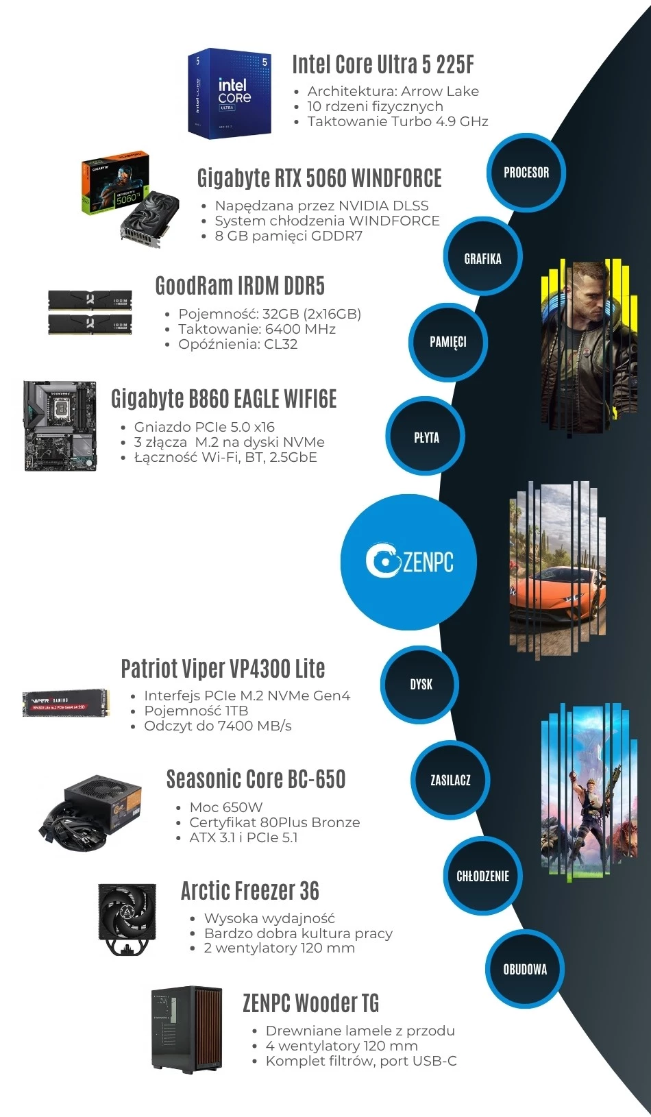 Komputer ZENPC Intel Ultra 5 225F RTX 5060 1TB 32GB DLSS 4