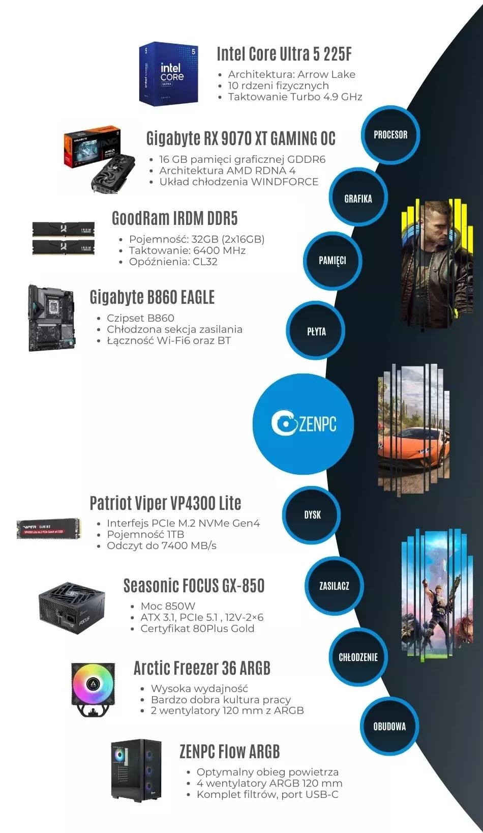 Komputer stacjonarny ZENPC Intel Ultra 5 225F RX 9070 XT 1TB 32GB