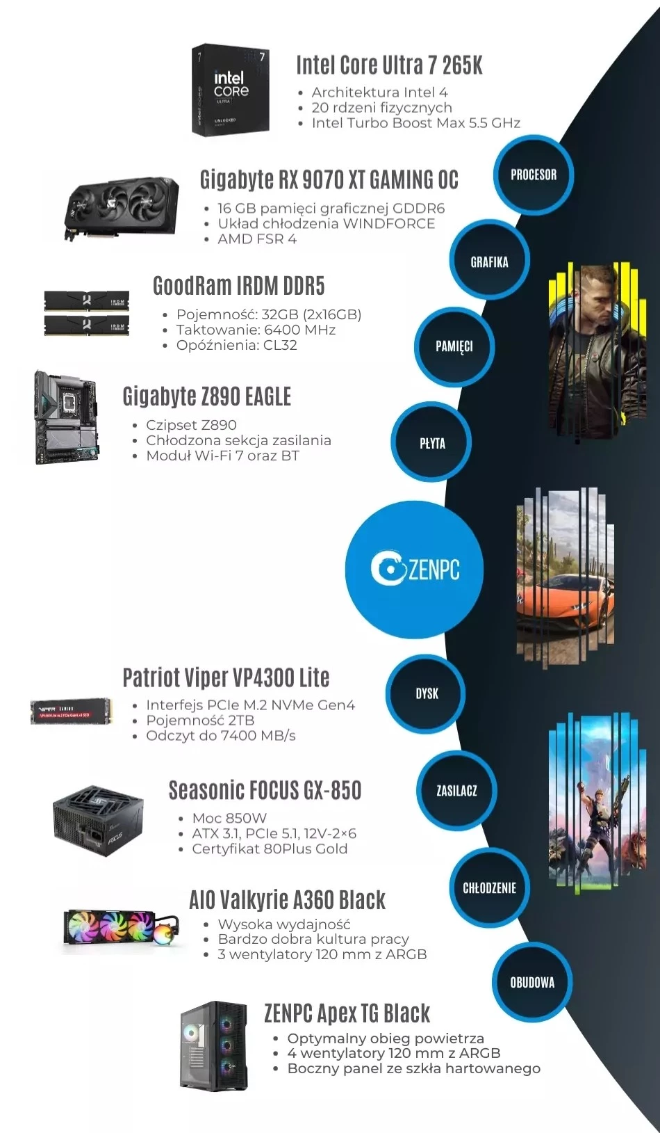 Komputer gamingowy ZENPC Intel Ultra 7 265K RX 9070 XT 2TB 32GB