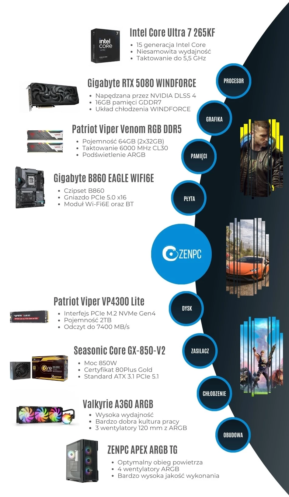 Dodaj pierwszą opinię: ZENPC Gaming Intel Ultra 7 265KF RTX5080 2TB 64GB ARGB DLSS 4Raty