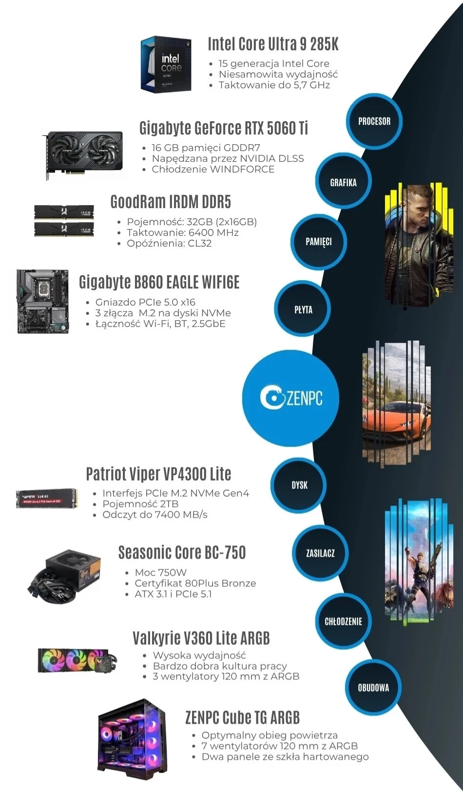 Dodaj pierwszą opinię: ZENPC Gaming Intel Ultra 9 285K RTX5060Ti 16GB 2TB 32GB ARGB DLSS 4Raty