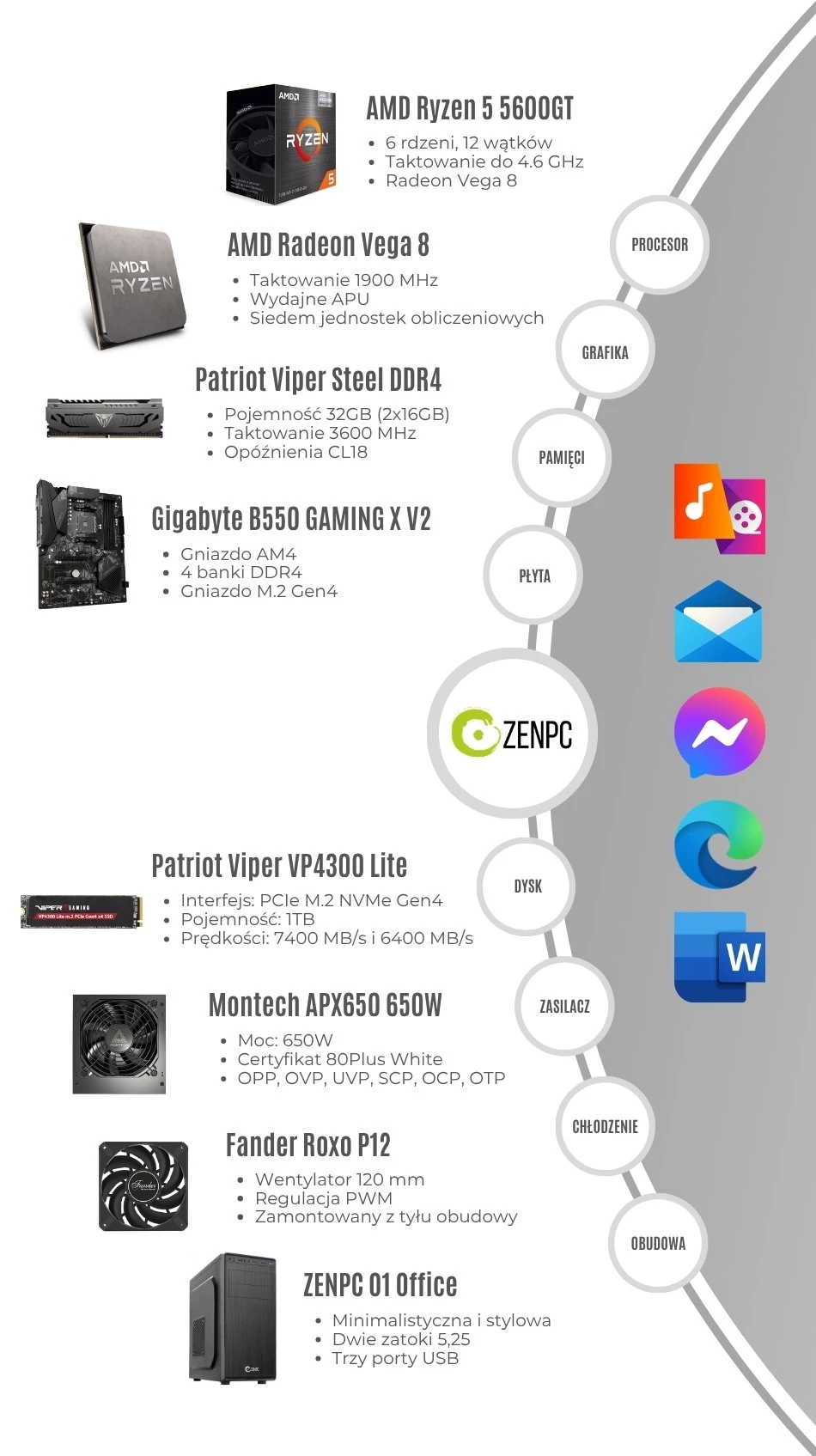 Komputer biurowy ZENPC AMD Ryzen 5 5600GT 1TB 32GB