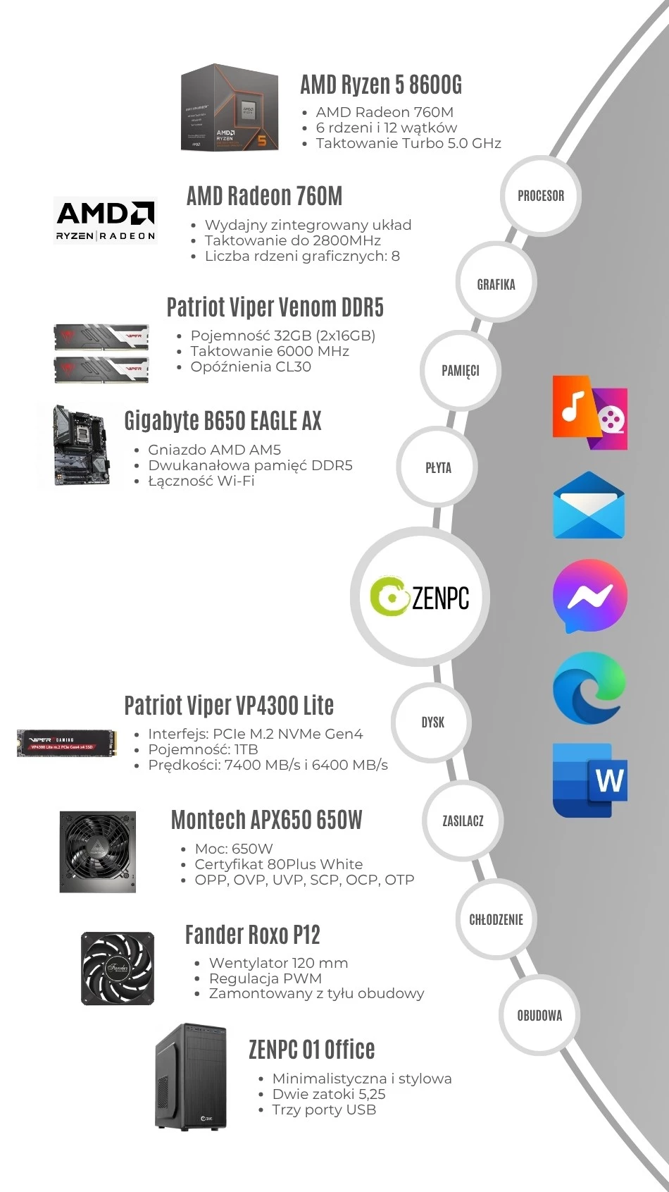 Komputer biurowy ZENPC AMD Ryzen 5 8600G 1TB 32GB