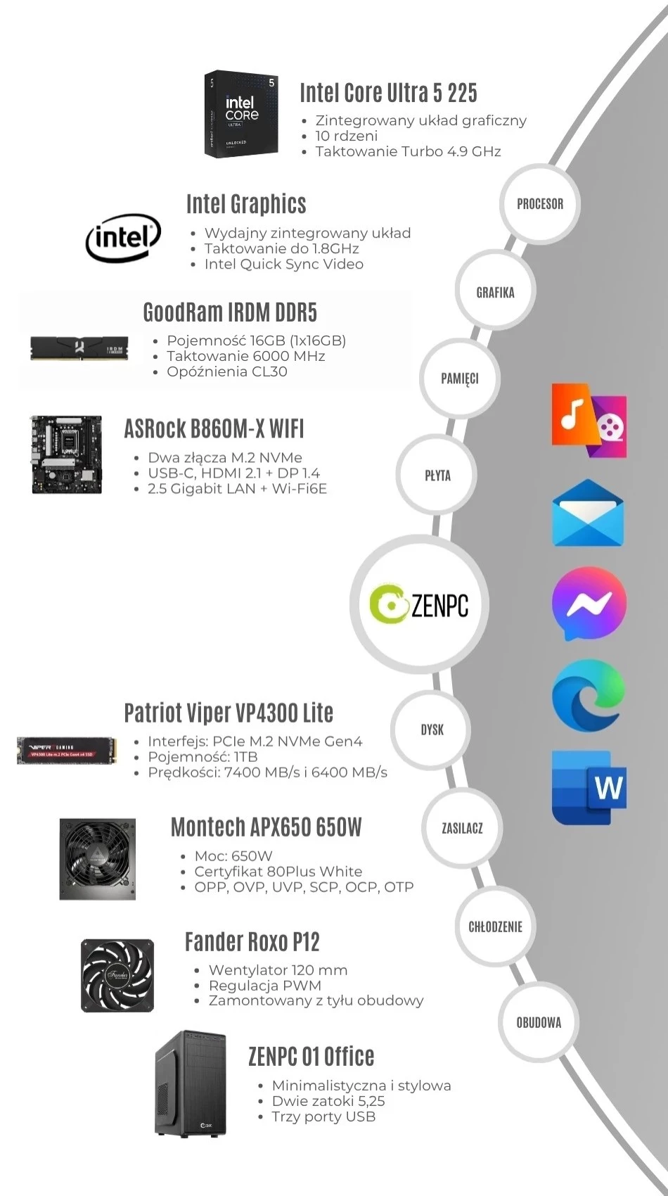 Komputer biurowy ZENPC Intel Ultra 5 225 1TB 16GB