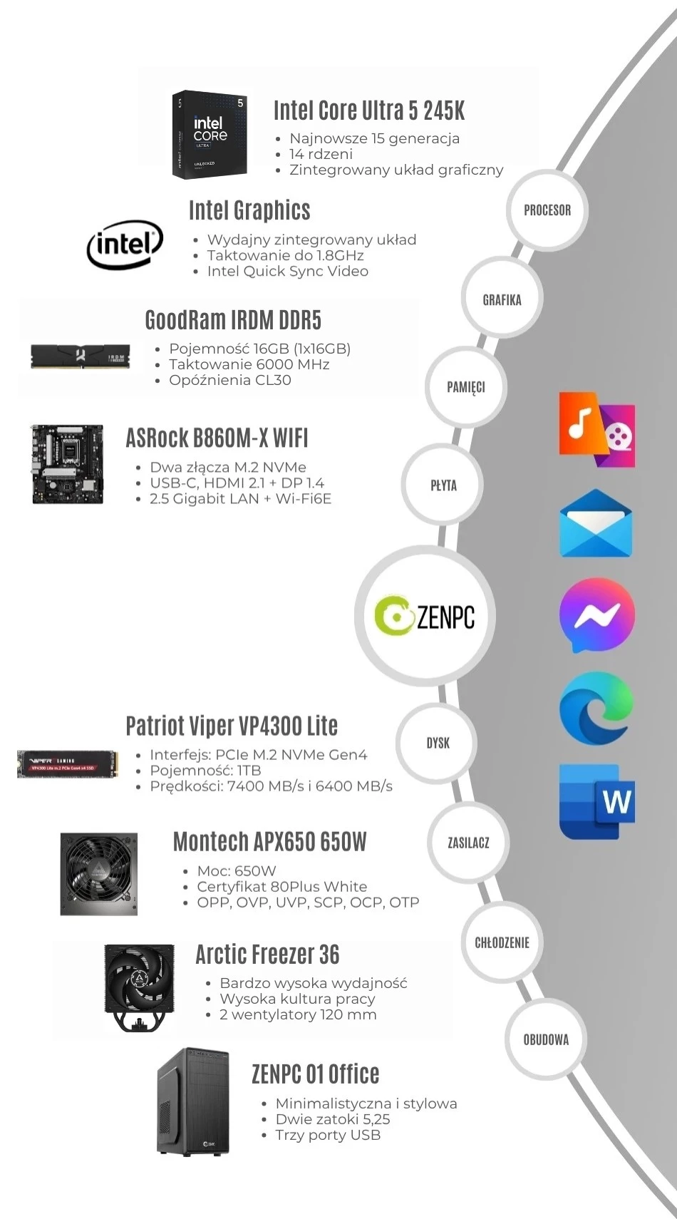Dodaj pierwszą opinię: ZENPC Office INTEL Ultra 5 245K 1TB 16GBRaty