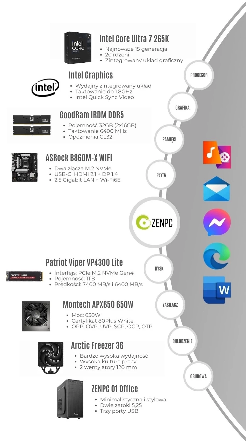 Dodaj pierwszą opinię: ZENPC Office INTEL Ultra 7 265K 1TB 32GBRaty