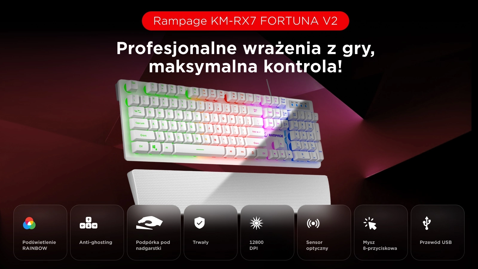 Dodaj pierwszą opinię: Zestaw klawiatura i mysz Rampage Fortuna białaRaty