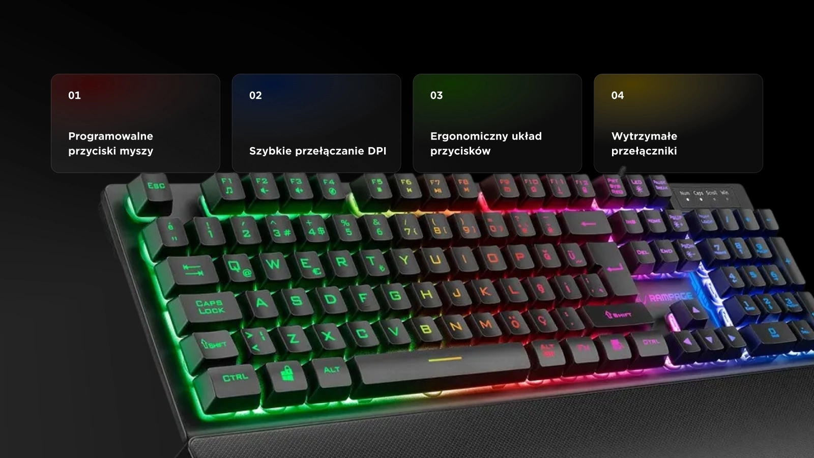 Dodaj pierwszą opinię: Zestaw klawiatura i mysz Rampage Fortuna czarnaRaty